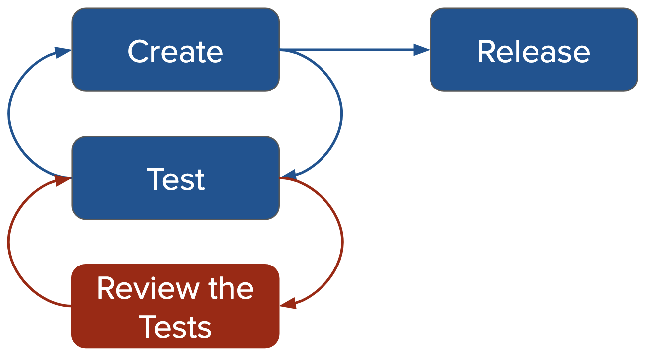 In a traditional approach to software development, software is first created, and then it is tested, and when testing finishes, there is usually a “configuration control board” that meets during which people attest that the software has been tested and meets its requirements. It is deployed for users to use.