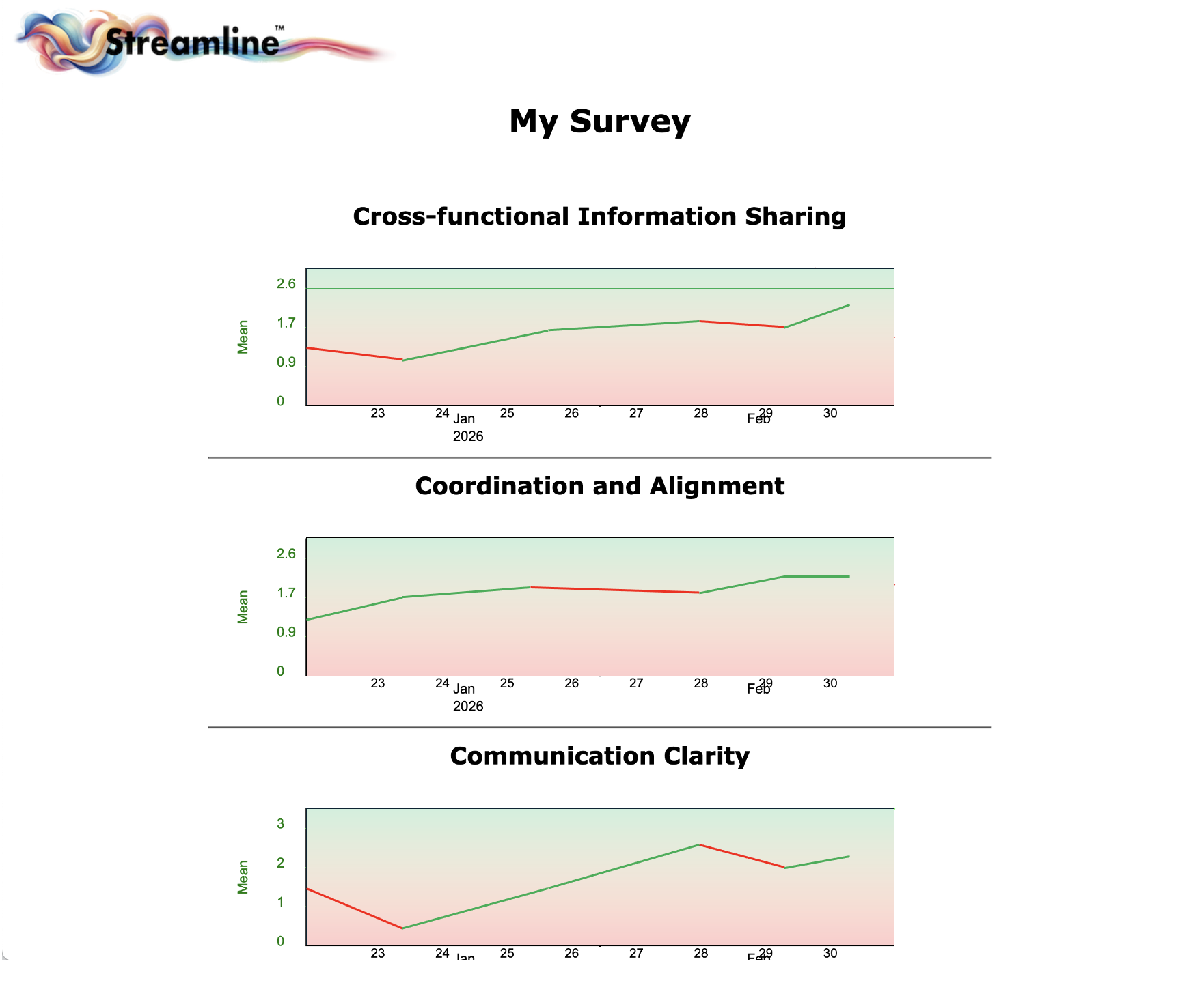 You can then go back to the Culture Change strategy and right-click, and select, View Progress. It will display a set of time series graphs, indicating clearly whether there has been improvement in attitudes and behaviors – resulting from your culture change strategy. In other words, you can now measure if your culture change strategies are working.